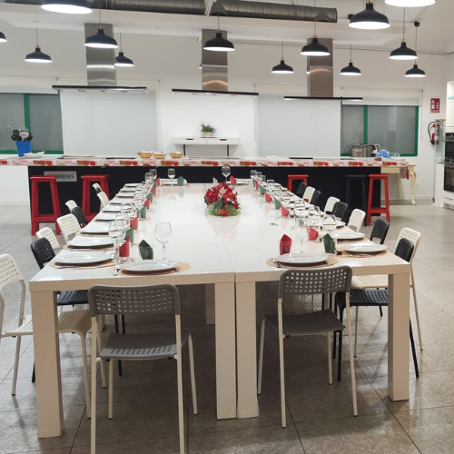 Nuestro personal te abrirá la sala y te dará las instrucciones necesarias sobre su equipamiento y funcionamiento. La sala se alquila solo para ti, por lo que no tendrás que compartir el espacio con nadie más que tus invitados. ¡Te sentirás como en casa! Las salas tienen un aforo aproximado de 100 personas y encontrarás mesas y sillas para que puedas organizar tu espacio como desees.